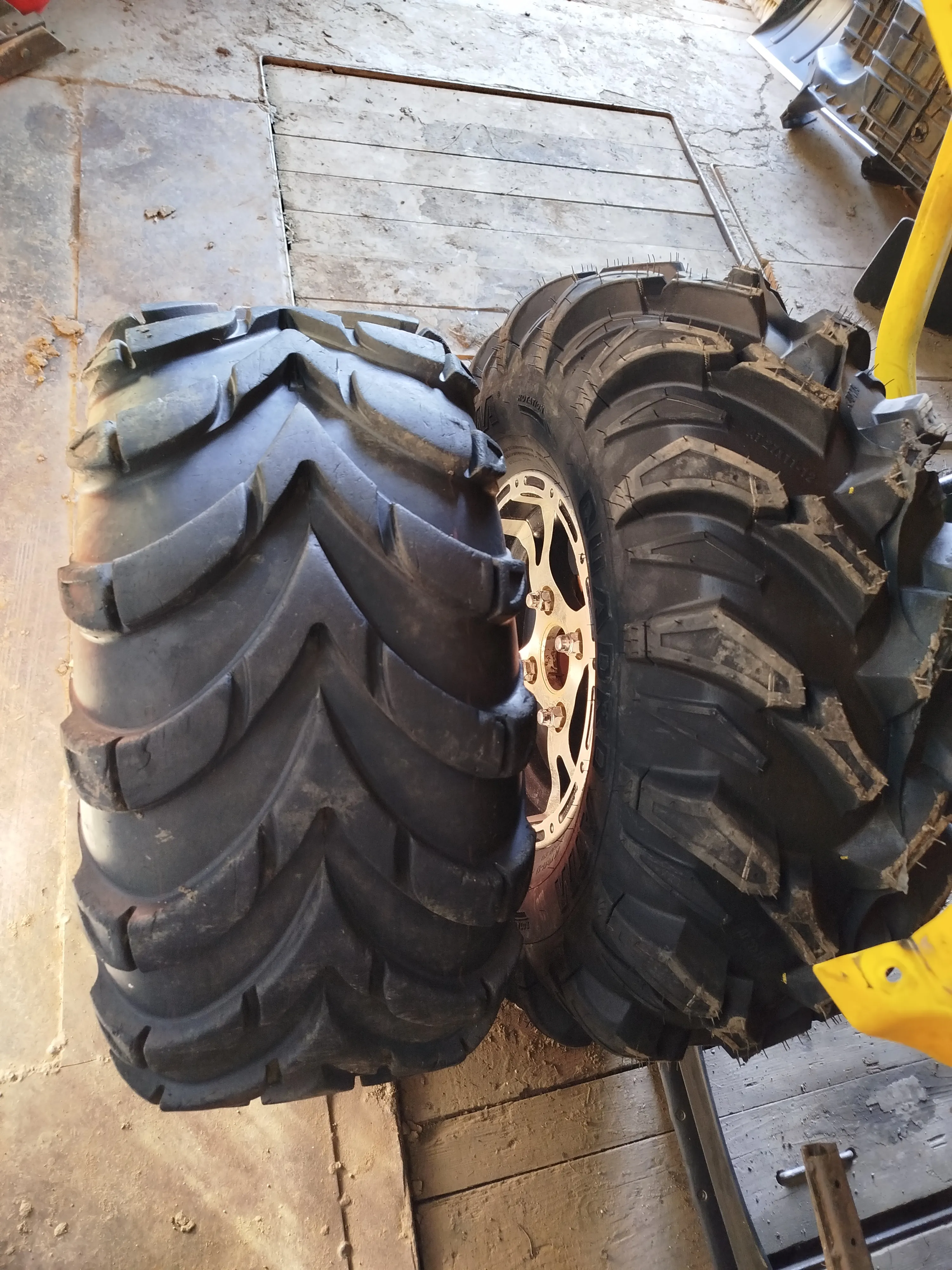 6 колес на фоне гор
